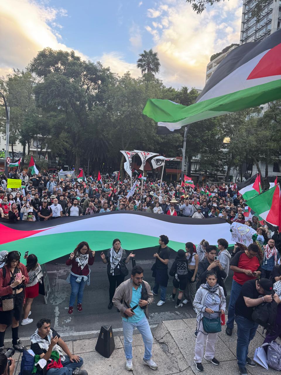 El 7 de octubre pasado el SUTUACM estuvo presente en el mitin de la Marcha Pro-Palestina para exigir el alto al genocidio en Gaza perpetrado por el Estado de Israel, así como para pedir la ruptura de relaciones de México con el gobierno israelí.