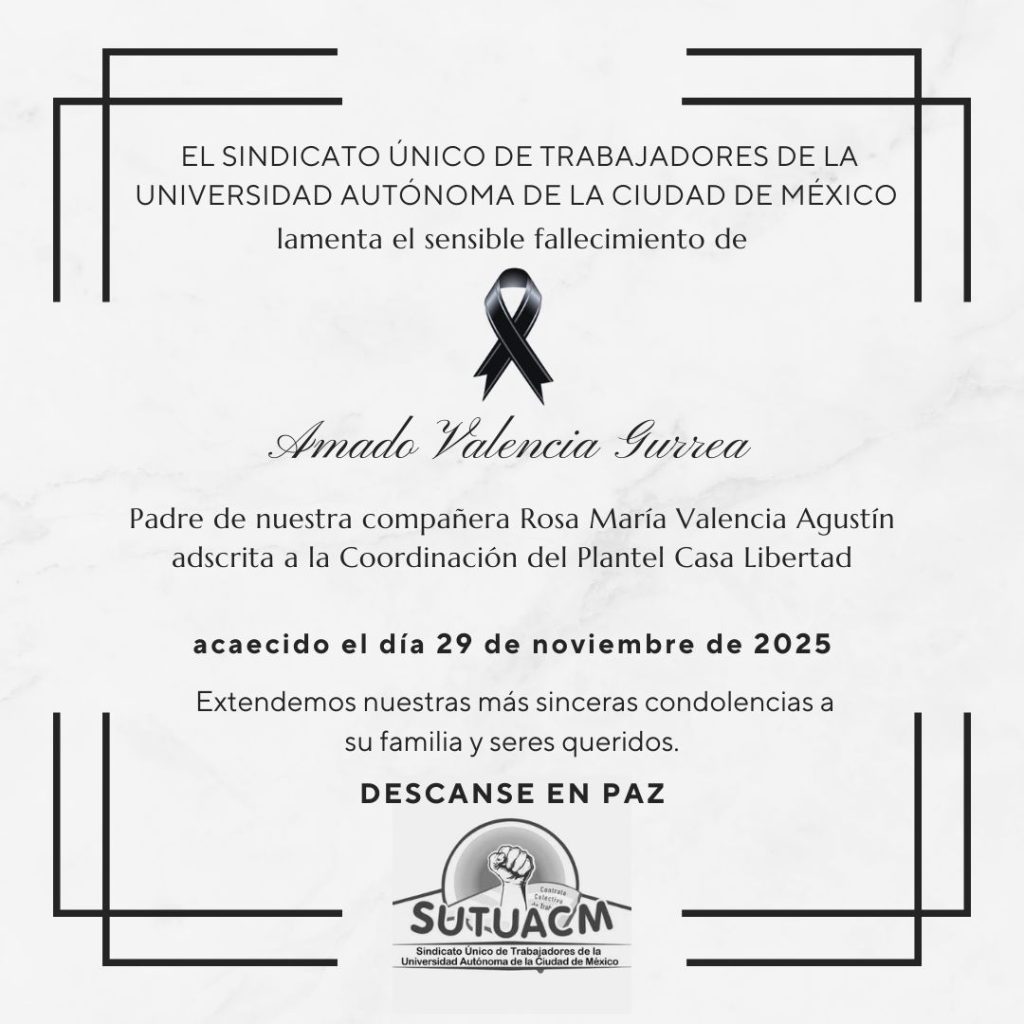 El SUTUACM lamenta el sensible fallecimiento de Amado Valencia Gurrea padre de nuestra compañera Rosa María Valencia Agustín
